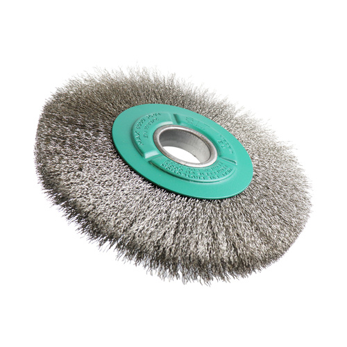 Ideally used on a bench grinder for extra light duty surface deburring & polishing. Also suitable for removing rust, glue, rubber or residue from metal surfaces