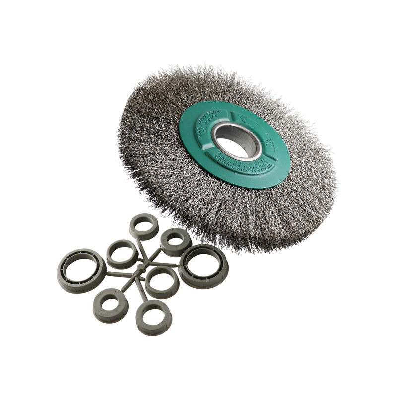 High quality 200mm x 23mm thick Stainless Steel wire wheel with a MULTI bore for use on bench grinders