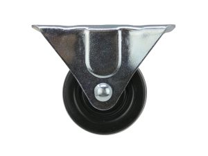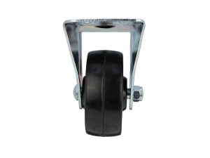 - 3 inch diameter black soft rubber wheel with rigid plate mount