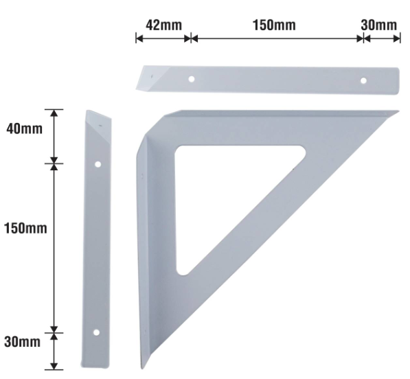 This robust white steel triangular bracket is engineered to provide reliable support in various DIY applications. With a load capacity of 100kg, it is ideally suited for mounting shelves, frames and other structural elements safely. The precise design and clean finish ensure dependable performance and easy installation, making it a practical, technical solution for DIY enthusiasts seeking quality and durability.详情说明