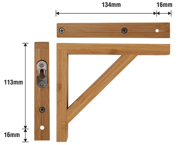 The Bamboo Bracket is a practical solution for DIY enthusiasts looking to create sturdy and aesthetically pleasing fixtures. With dimensions of 130x150x20x15mm and a varnished finish, this bracket is not only functional but stylish. Designed to support a load capacity of up to 40kg, it's perfect for shelving and various mounting needs, making it an essential addition to any home improvement toolkit.详情说明
