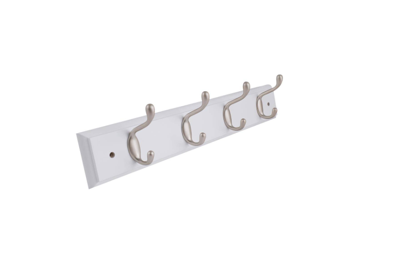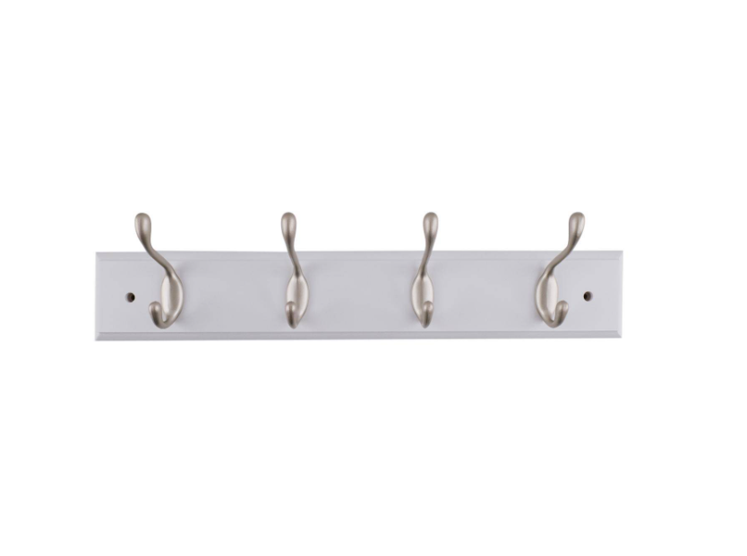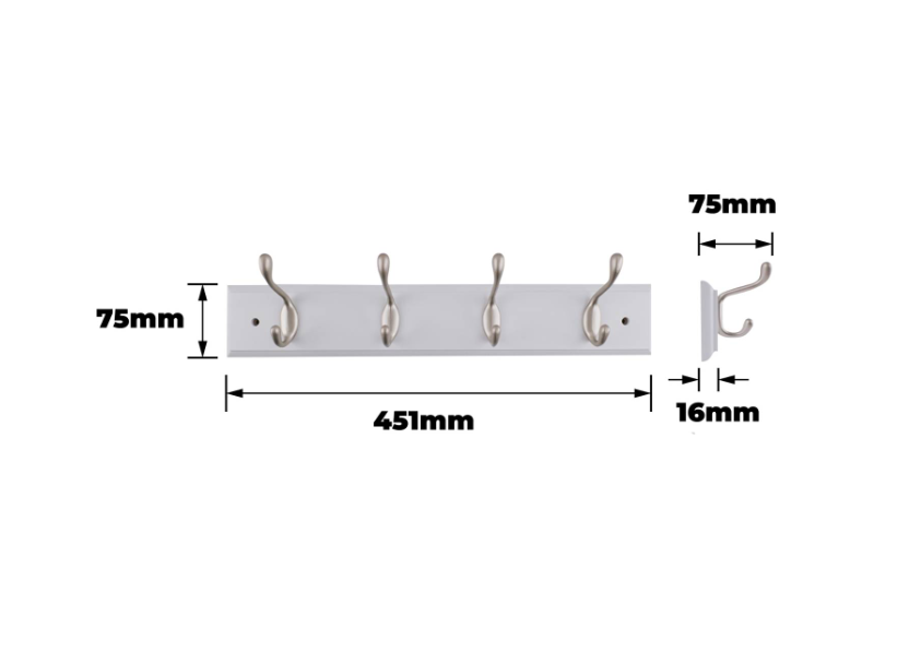 The Hook Coat Rack features a sleek white board with four satin chrome hooks. It’s designed for efficient organisation in entryways, hallways, or any space where you need quick access to coats, bags, or accessories. The combination of durable aluminium hooks and medium density fibreboard ensures long-lasting functionality, making it an excellent choice for DIY enthusiasts looking to enhance their home storage solutions.详情说明