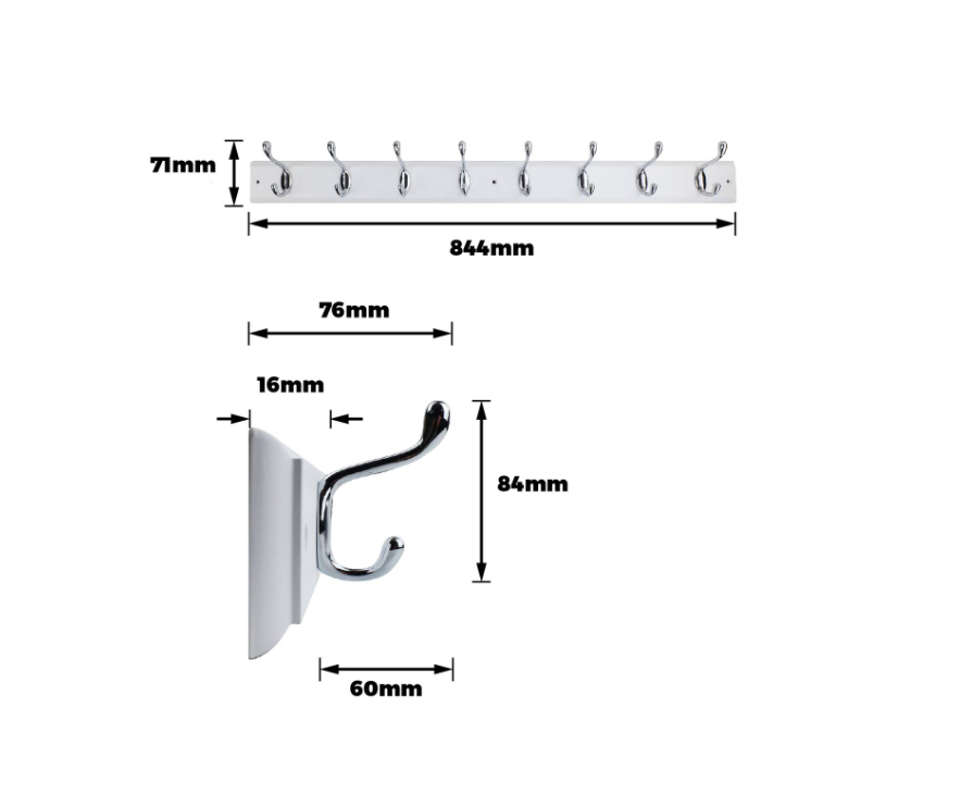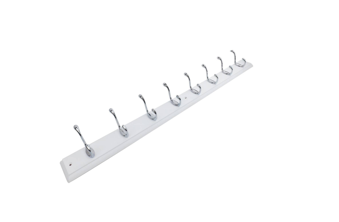 Hookrail - White w/ Chrome HD H&C 8 FSC100% is a robust steel hookrail designed for effective tool and equipment organisation. Ideal for both residential and commercial workshop setups, this product offers a sleek white and chrome finish while providing 16 secure hooks for efficient storage solutions. Its solid construction and FSC certification ensure durability and sustainability valued by DIY enthusiasts who require practical, reliable technical specifications for their projects.详情说明
