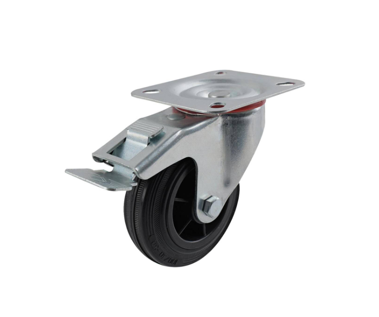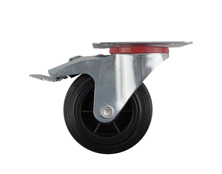 CASTOR SWIVEL PLATE WITH BRAKE D100 80KG - REINFORCED BLACK RUBBER & PLASTIC CORE
