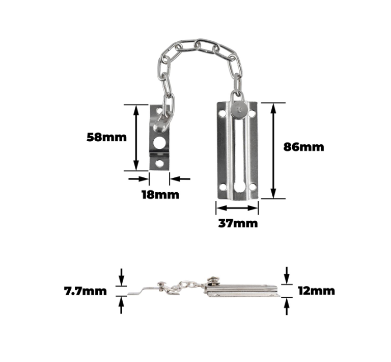 Door Chain 85mm Satin Nickel PK1 is an essential accessory for enhancing the security of your home. Designed for door mounting, this chain allows for added safety by restricting the door's opening while still permitting a view outside. Ideal for DIY enthusiasts, it combines durability with a sleek satin nickel finish, making it suitable for various door styles.详情说明