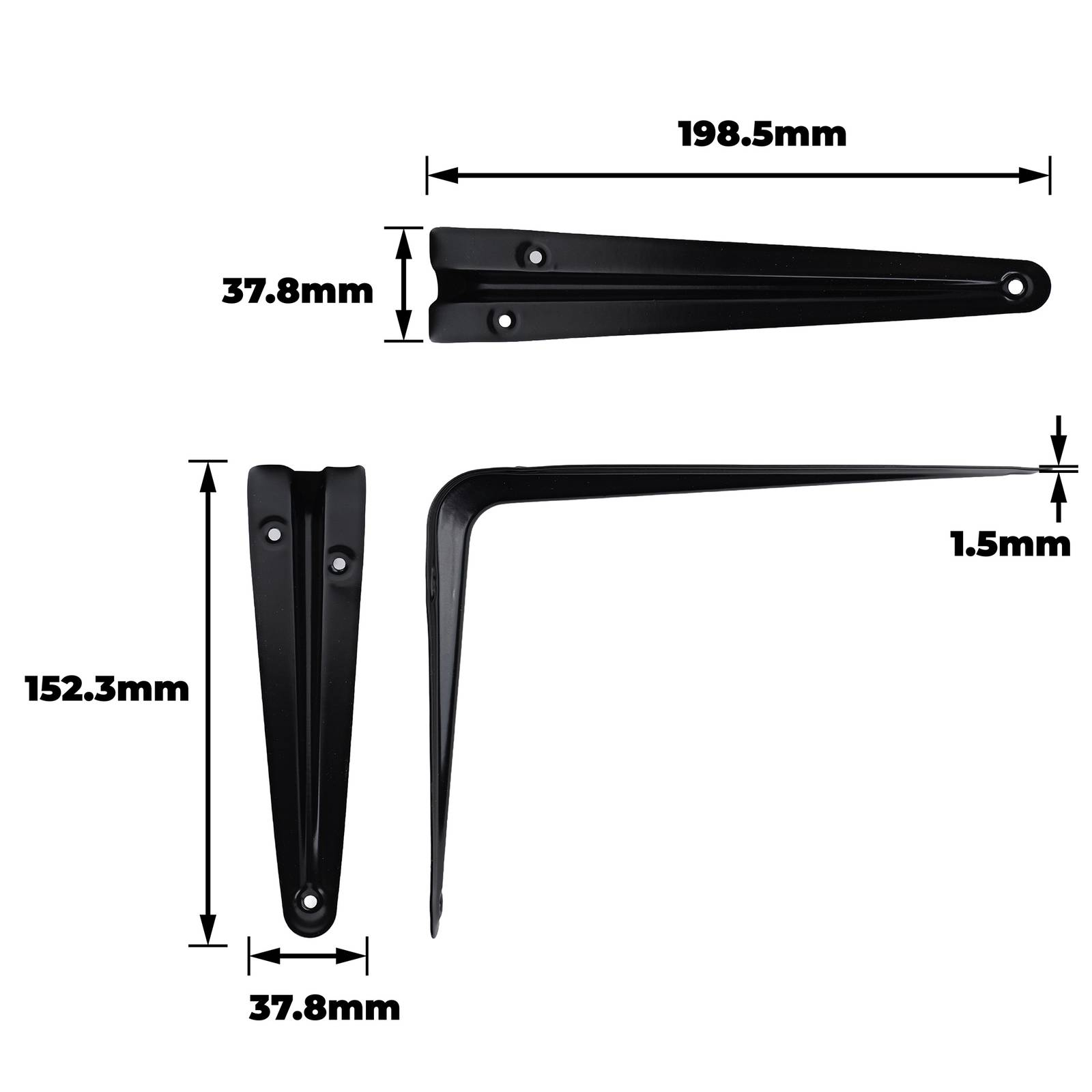 carinya by EHI AUSTRALIA Matte Black London Bracket 200x150mm - 24 Pack is a set of robust steel brackets designed for secure support in DIY projects. With a load capacity of 22 kgs per pair, these brackets deliver dependable performance on both residential and commercial installations. The sleek matte black finish adds a contemporary look while the pack of 24 ensures ample supply for tackling multiple repair and mounting tasks. Reliable construction and practical design make these brackets a valued choice for technical DIY enthusiasts.详情说明