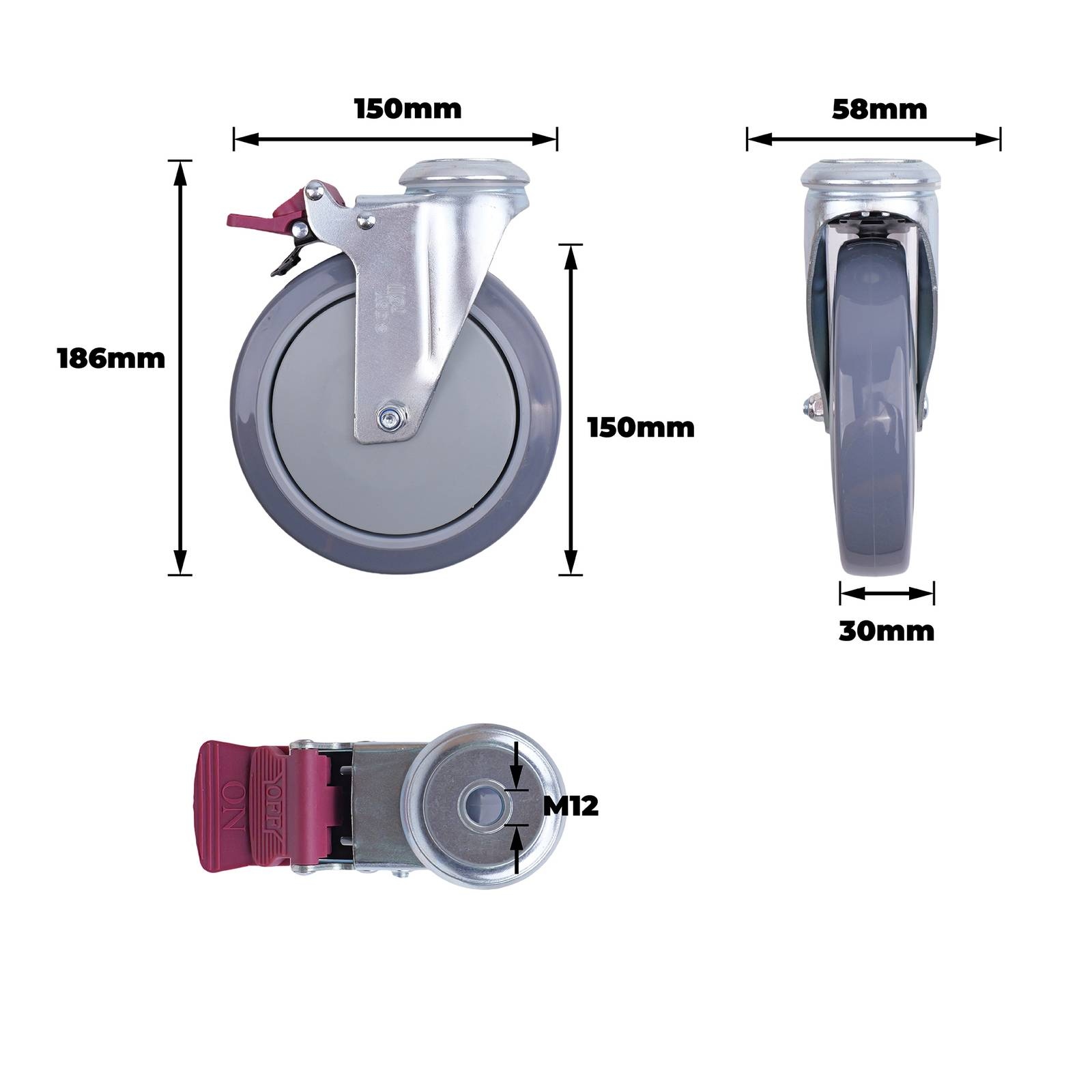 easyroll 150MM GREY URETHANE BOLT HOLE is engineered for precision and durability in demanding DIY applications. Ideal for institutional and retail projects, its steel housing, nylon wheel core and precision bearings ensure low rolling resistance and smooth action. The non-marking, long-lasting urethane coupled with a colour coded total locking brake and robust design, capable of handling loads up to 130kgs, makes it a reliable choice for skilled users.详情说明