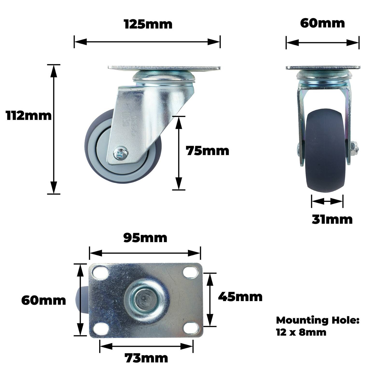 75MM GREY RUBBER SWIVEL PLATE