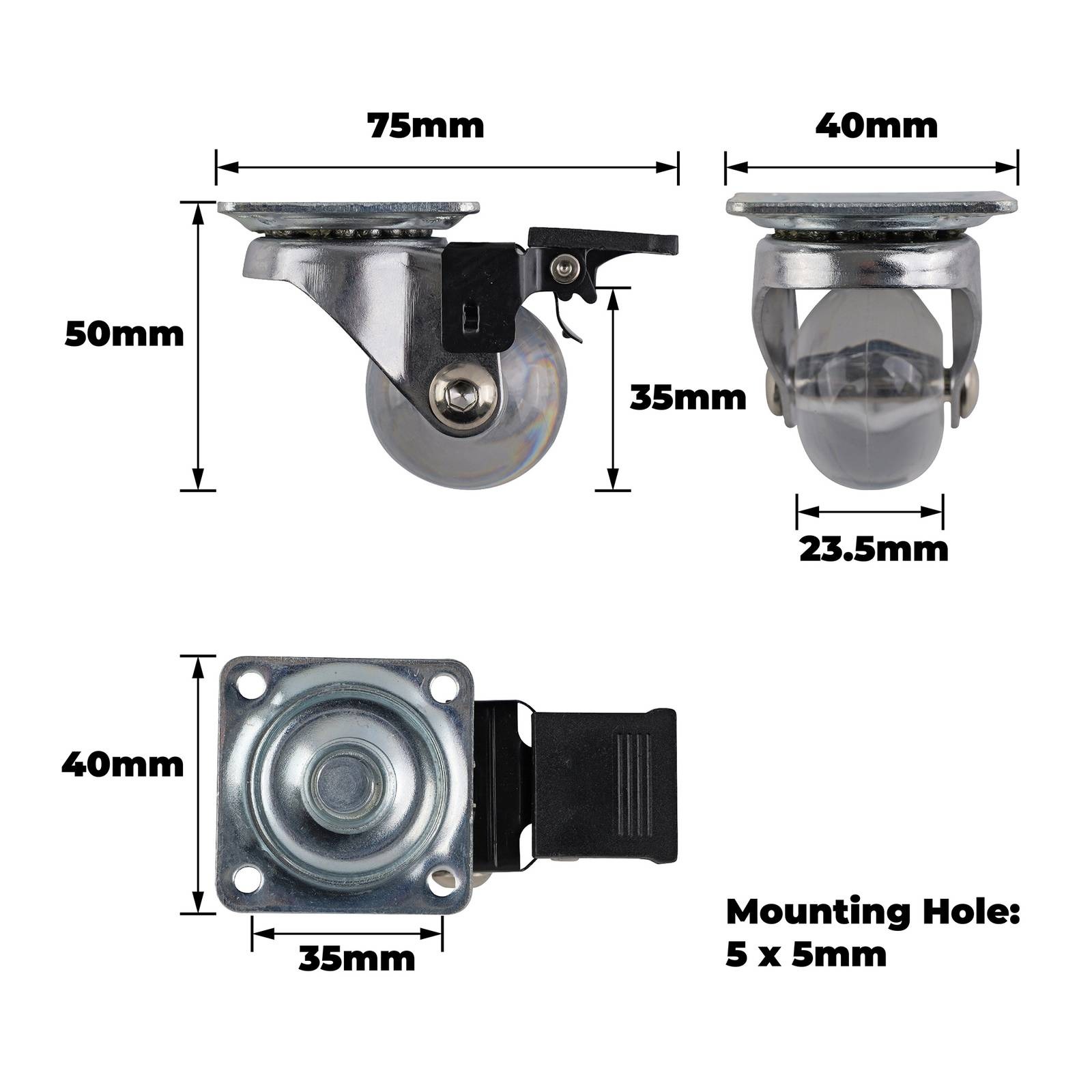 35MM TRANSLUCENT SWIVEL CASTER WITH BRAKE IN
