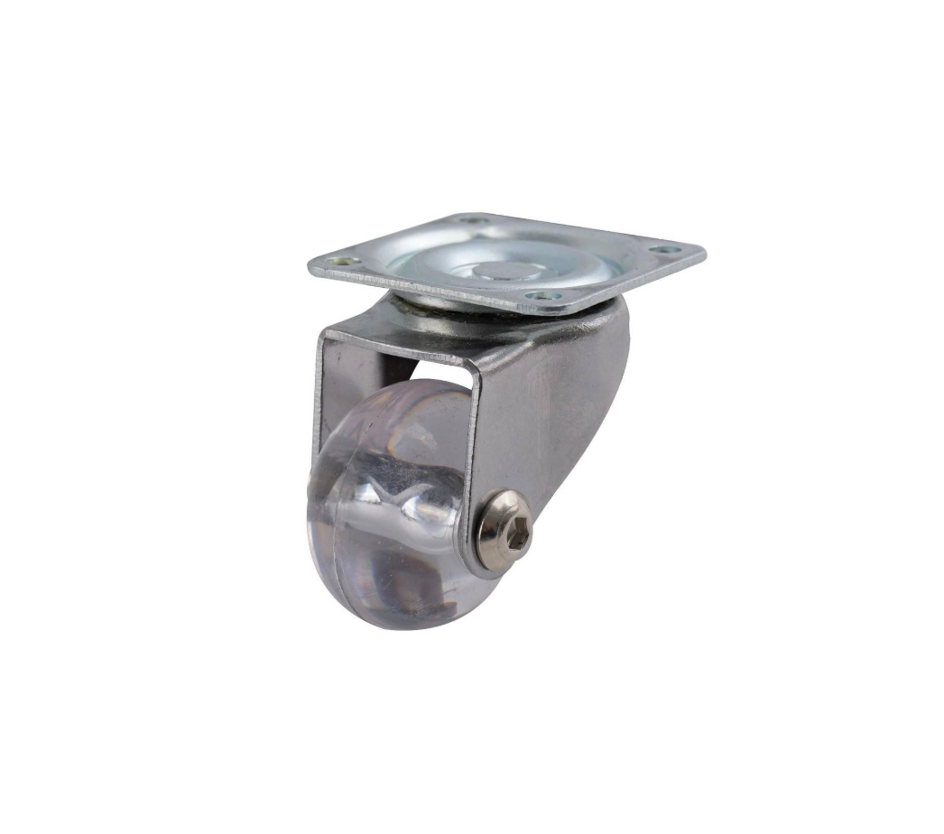 easyroll 35MM TRANSLUCENT SWIVEL CASTER IN CHROME FINIThis swivel caster is designed for DIY enthusiasts seeking reliable mobility solutions. Its robust steel housing and single raceway construction provide a stable and durable option for various projects. The 35mm translucent design with a chrome finish allows for precision manoeuvrability, while the 40 kg load capacity ensures safe performance under demanding conditions. Ideal for furniture, industrial applications and other DIY tasks, it delivers smooth rotation for practical, everyday use.