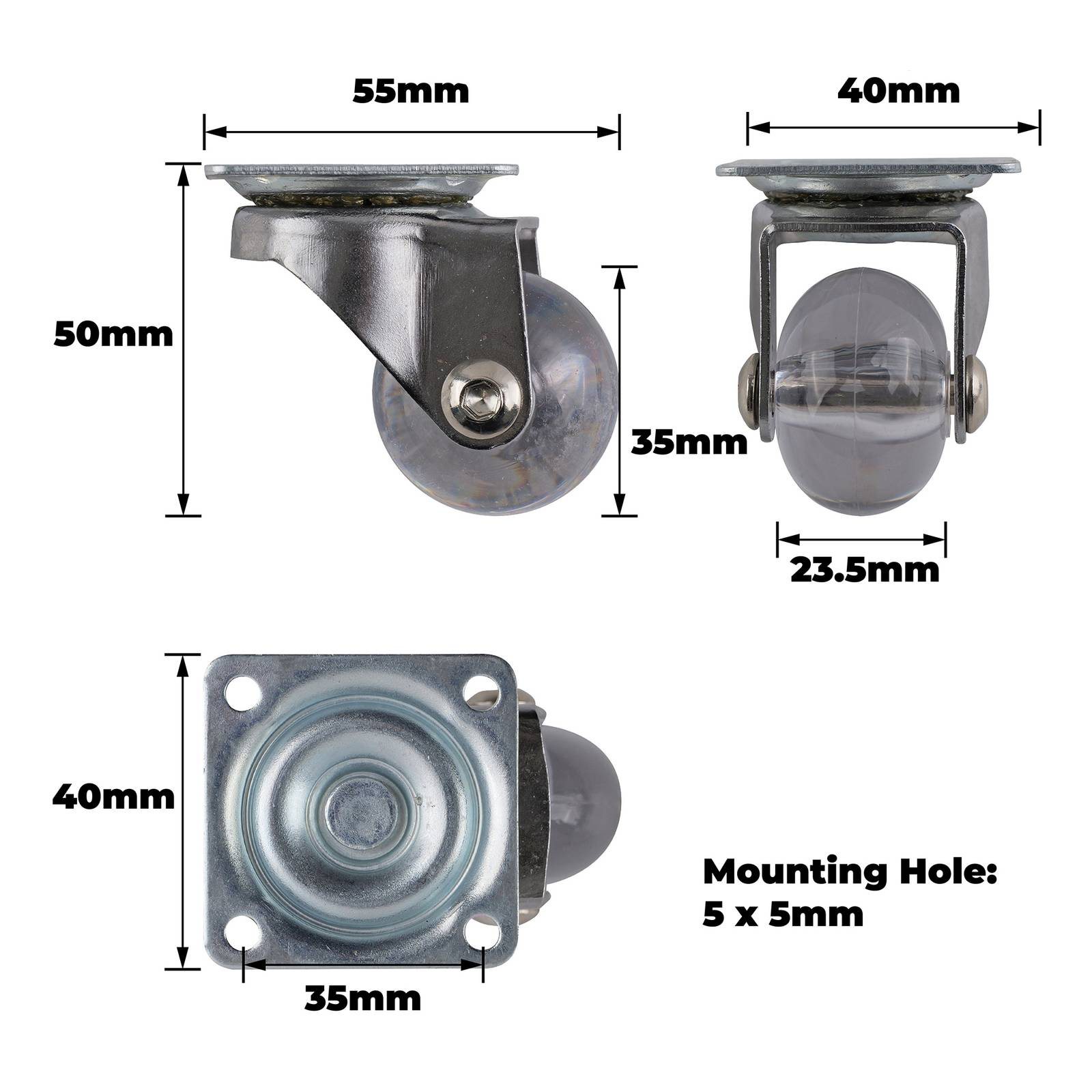 - 35mm translucent caster ensures precise manoeuvrability with a chrome finish