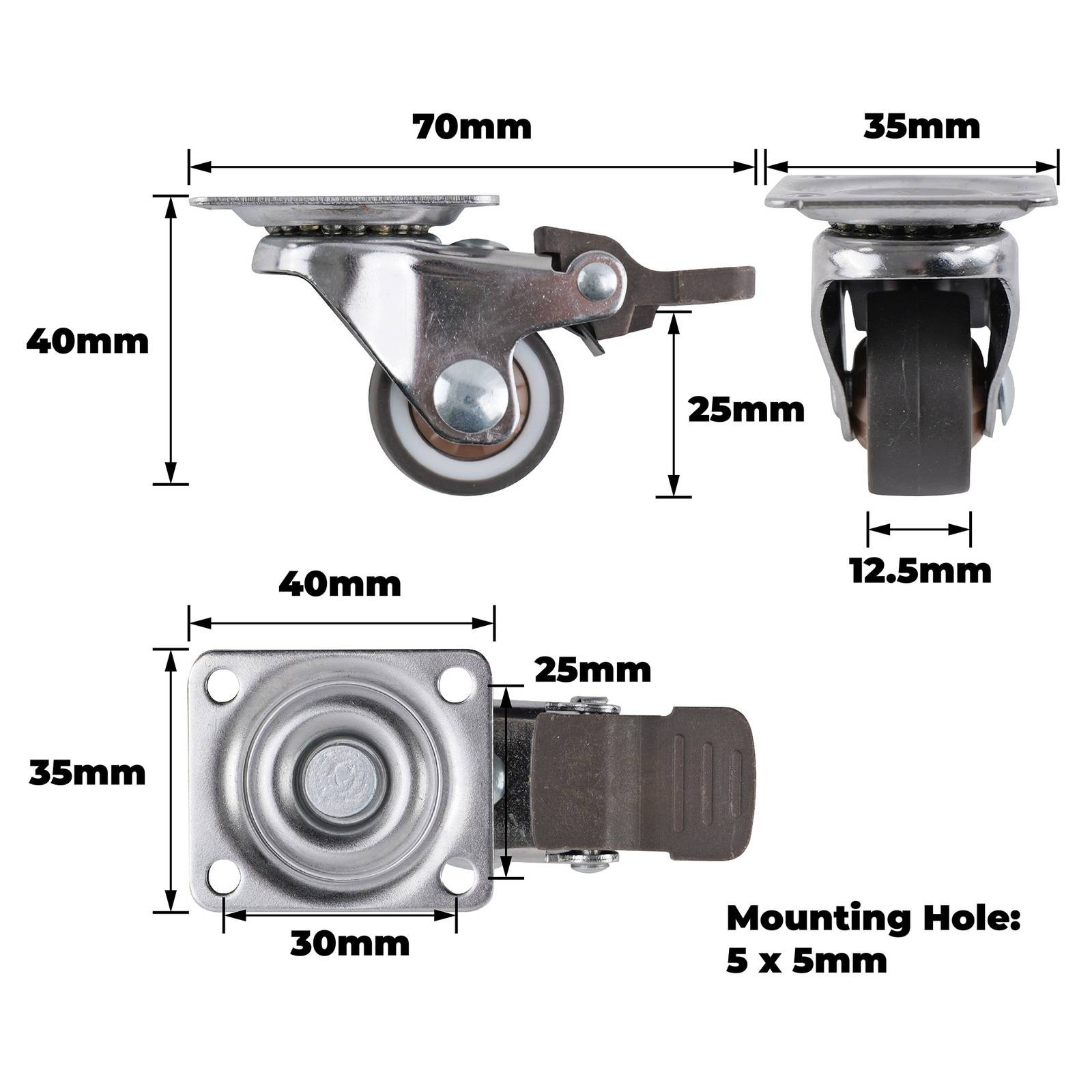 MOVE IT 25MM GREY RUBBER DOUBLE BALL BEARING SWIVEL WThis robust swivel brake castor is designed for the DIY enthusiast who demands reliability and practicality. Featuring a durable steel housing and a double ball bearing swivel mechanism, it offers secure and smooth movement even under a 10 kg load. The castor’s precise engineering makes it suitable for various mobile applications including workshops and industrial use. Its straightforward design ensures easy installation and dependable performance in everyday settings.