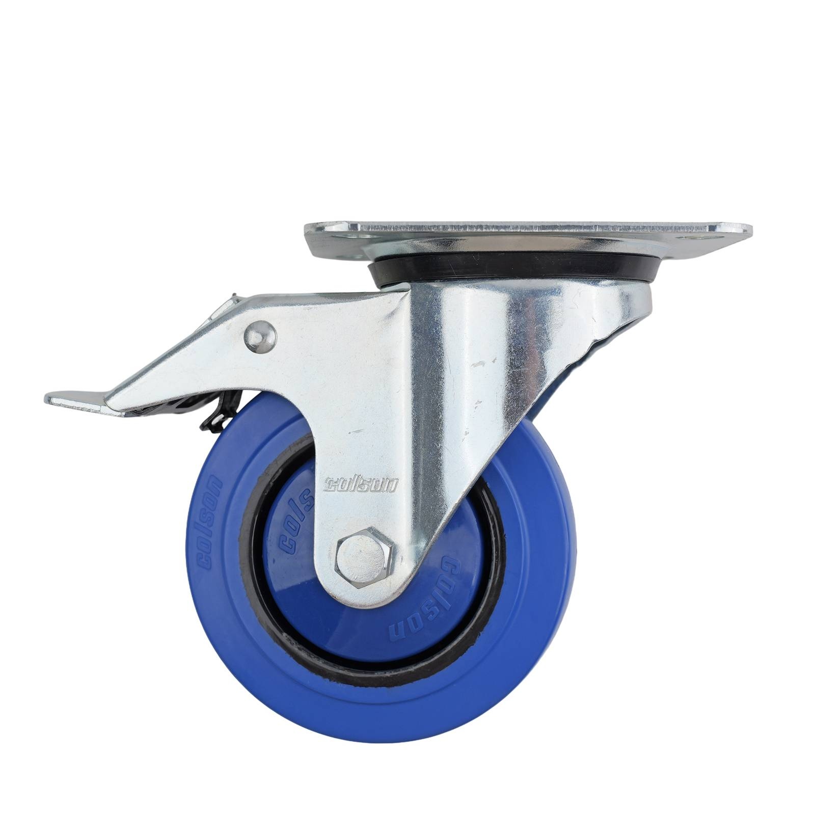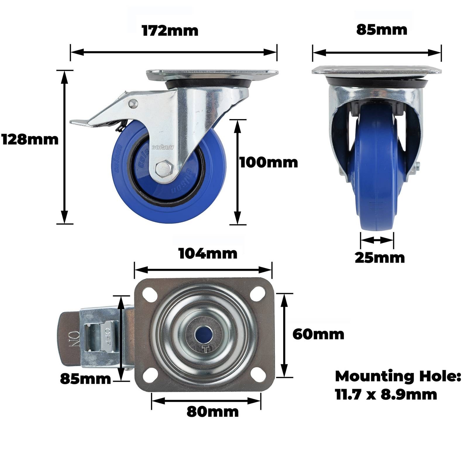 100MM BLUE RUBBER SWIVEL PLATE BRAKE CASTOR