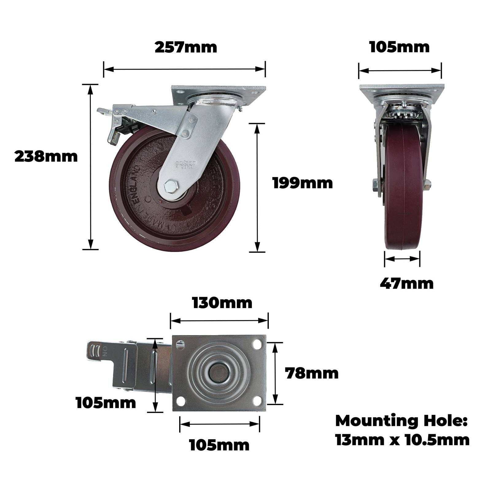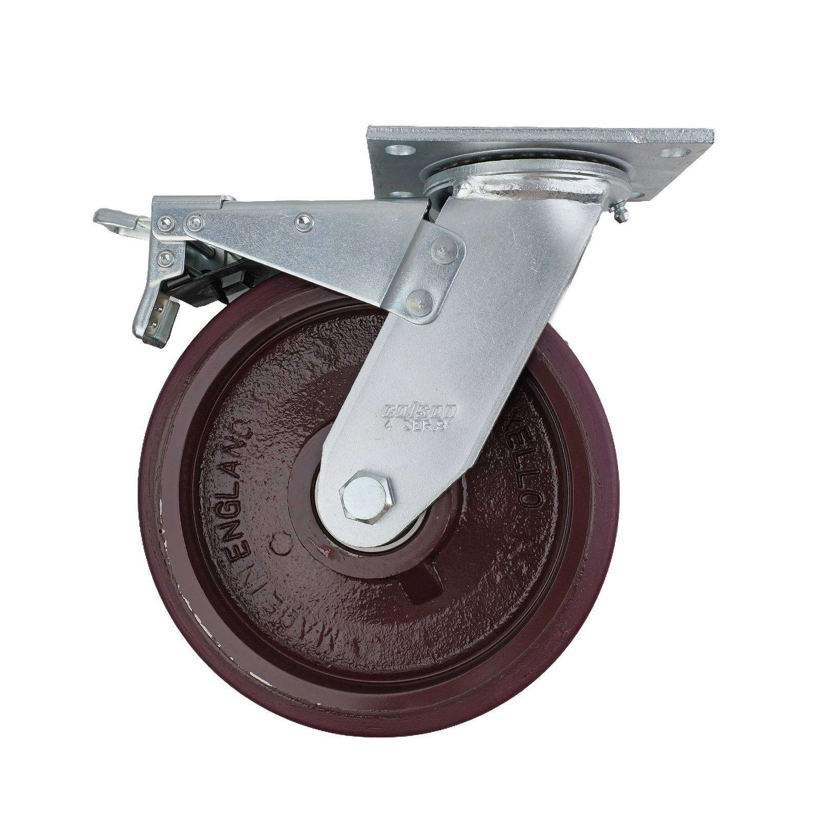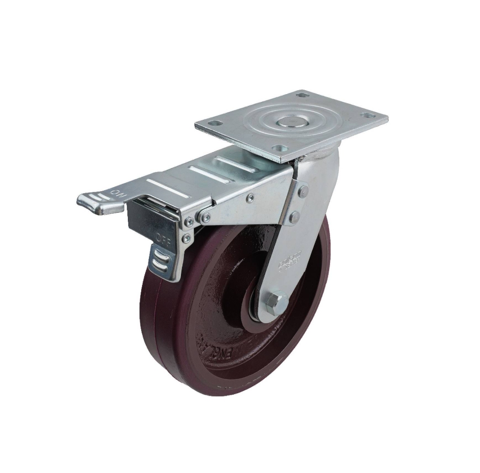200MM URETHANE/CI SWIVEL PLATE BRAKE CASTOR