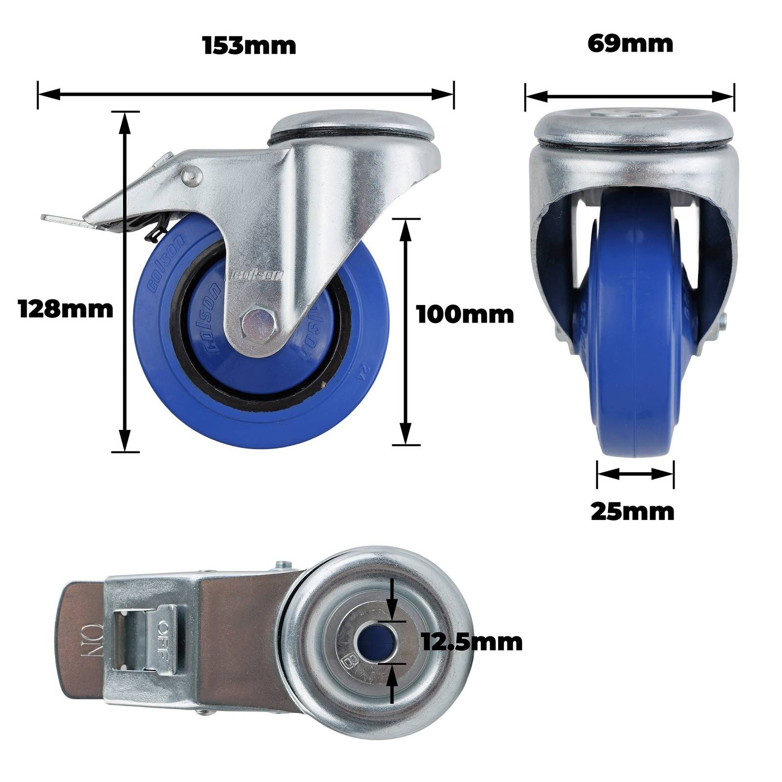 100MM BLUE RUBBER BOLT HOLE BRAKE CASTOR