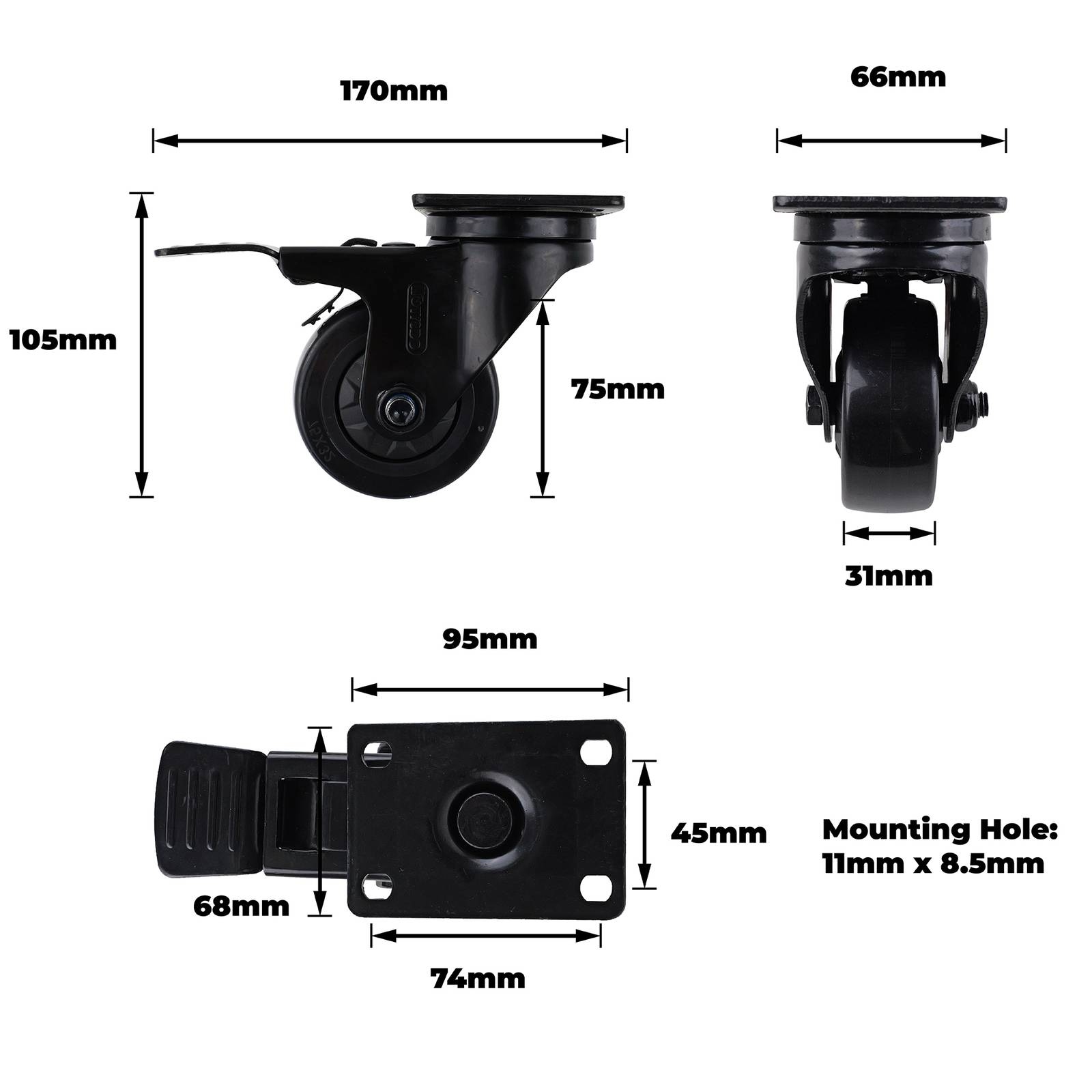 75MM BLACK PVC WITH PP CORE SWIVEL WITH TOTAL
