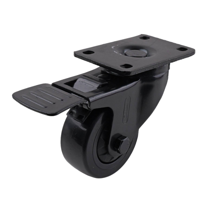 easyroll 75MM BLACK PVC WITH PP CORE SWIVEL WITH TOTAL is a precision-engineered swivel brake castor designed for DIY enthusiasts requiring dependable mobility and load-bearing efficiency. The design incorporates quality materials including a robust steel housing and carbon steel bearings, ensuring smooth and controlled movement under an 80 kg load capacity. Its single raceway optimises weight distribution, making it ideal for use in workshops, industrial carts, and other DIY applications.详情说明