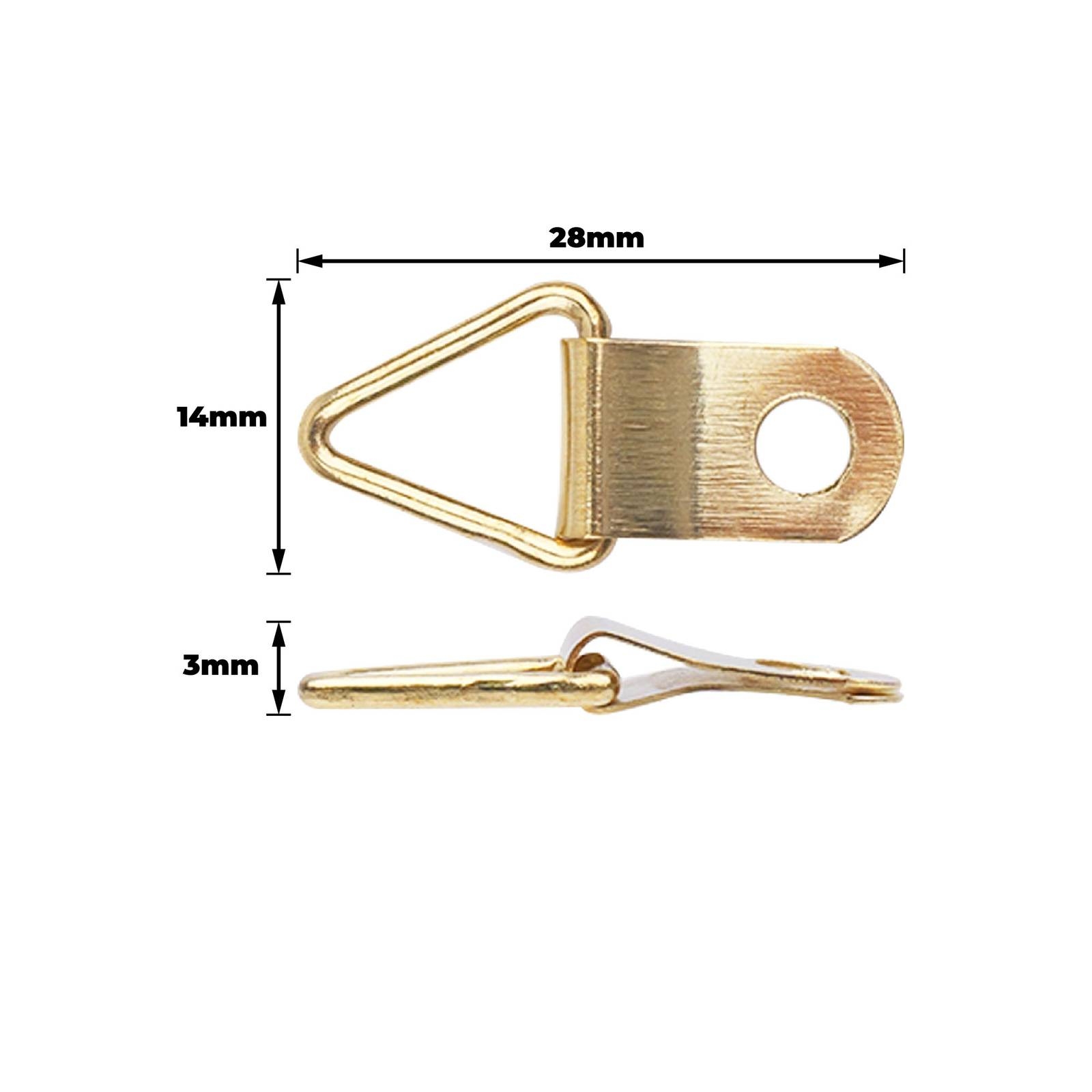 PICTURE TRIANGLES LRG 10KG BP 8PCSA set of eight robust picture triangles engineered from high-quality steel and finished in a brass-plated coating. Designed for DIY enthusiasts, these triangles provide reliable support for hanging and securing picture frames. Their precision design minimises movement and ensures a stable mounting system. Ideal for both home improvement projects and professional installations, these components combine durability with practical functionality, offering a secure and elegant solution.