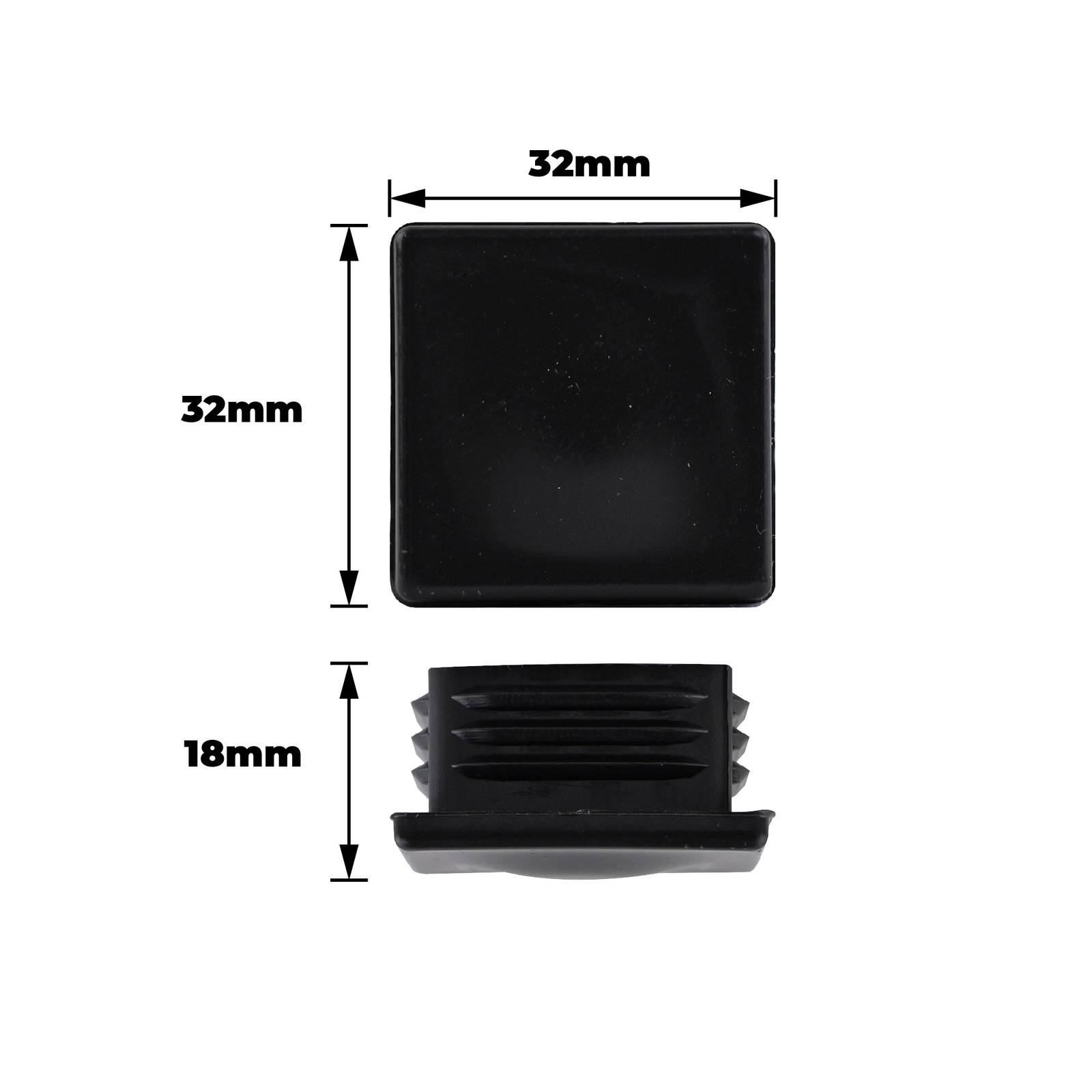 C/TIP SQU INT 32 BLK PLASTIC 4PCS is an external leg tip designed for DIY repairs and projects. Made from durable polypropylene, these square-shaped, black tips are ideal for replacing worn furniture legs. Their precise engineering ensures a secure fit and stability while minimising surface wear. Lightweight at 5.5 grams each and provided in a set of four, this product offers a practical, straightforward solution for home and commercial improvement tasks.详情说明