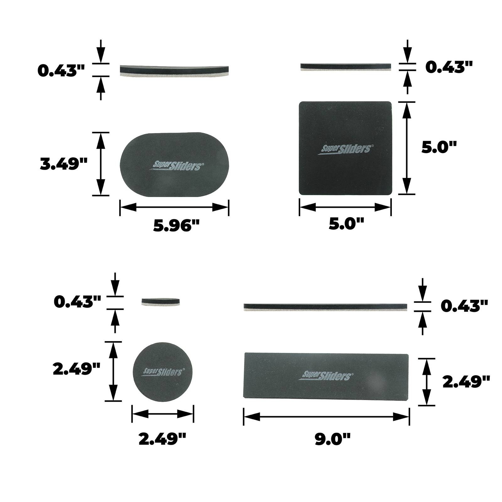 - Versatile kit includes ellipse, round, rectangle and square shaped sliders.