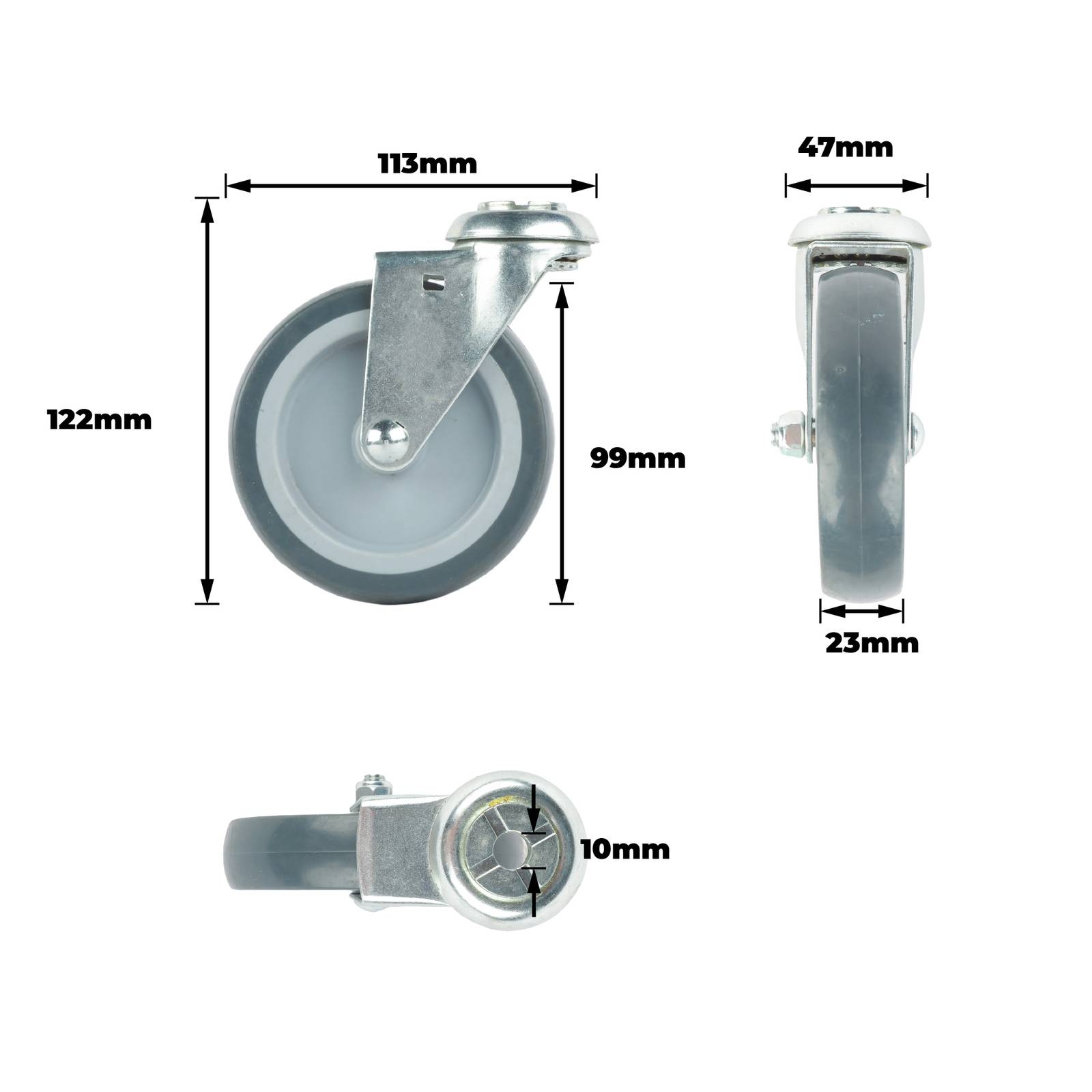 Grey PU swivel wheel 100mm, zinc plated bolt hole, 70kg