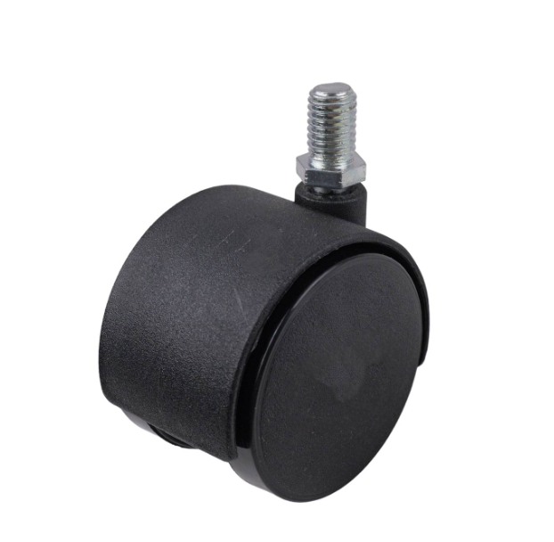 Black Polypropylene swivel twin wheels 50mm with threaded rod M10X20 mm are engineered for reliable integration into DIY projects and retail applications. Designed to support up to 30kg, these casters provide smooth, controlled movement thanks to their dual raceway plain bearing system and robust steel housing. Ideal for custom carts, industrial equipment, or furniture, they deliver the essential technical performance and durability required by professionals and technically inclined hobbyists.详情说明
