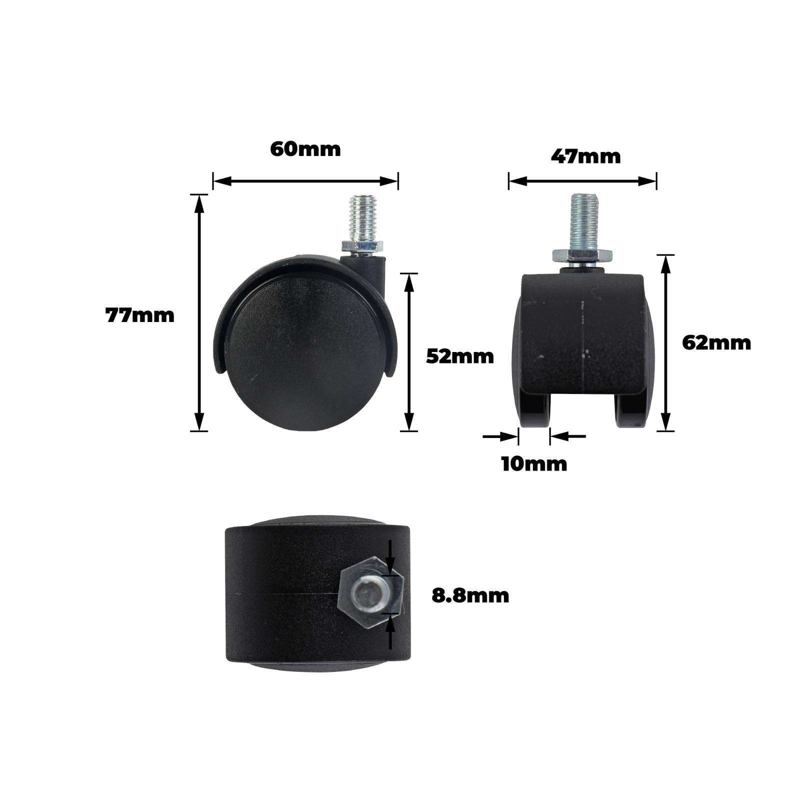 Key Features:- 50mm twin swivel wheels with integrated M10x20 mm threaded rod