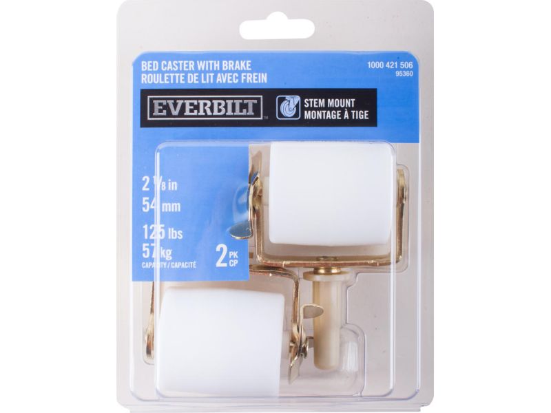 The Shepherd Hardware 2-1/8-Inch White Bed roller with stem 2-1/8-Inch White Bed roller with stem mount includes plastic socket and is ideal for wood or metal bed frames. mount includes plastic socket.